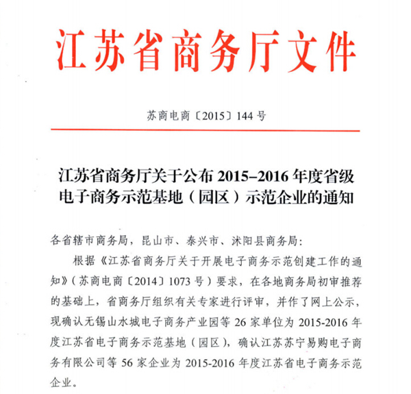 3月9日,江蘇省商務(wù)廳正式發(fā)文公布“江蘇省電子商務(wù)示范基地”名單,蘇宿電子商務(wù)產(chǎn)業(yè)園喜獲2015-2016年度電子商務(wù)示范基地。