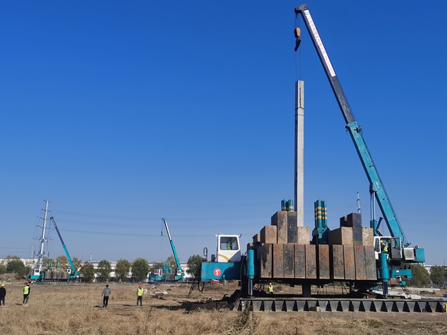 項目位于青海湖西路與五指山路交叉口,樁基采用預(yù)制混凝土方樁,施工區(qū)域涉及商業(yè)、白領(lǐng)公寓、藍領(lǐng)公寓、人防區(qū)及非人防區(qū),共計2235根,總長度約4.7萬米,為加快工程進展,現(xiàn)場布置四臺設(shè)備同步施工,確保2022年1月底完成施工。