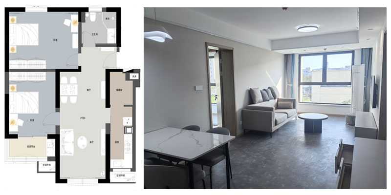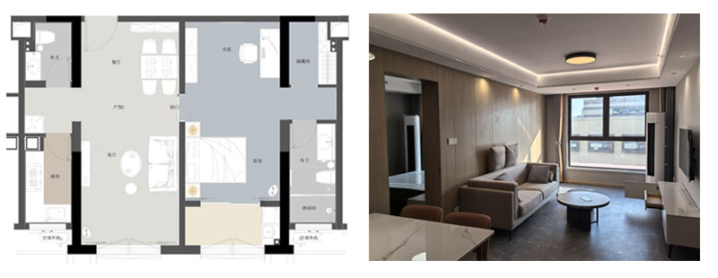 青年公寓一期3#白領(lǐng)公寓共三種戶型,A戶(2室1廳1廚1衛(wèi)面積84m2)44間、B戶(1室1廳1廚1衛(wèi),面積35m2)88間、C戶(1室1廳1廚2衛(wèi),面積72m2)44間,共計154間,裝修面積約1.3萬平方米。白領(lǐng)公寓旨在服務于入駐企業(yè)高精尖人才,是園區(qū)迄今為止已建成的單體建筑規(guī)模最大、配套設(shè)施最為完善的白領(lǐng)公寓,內(nèi)設(shè)廚灶、抽油煙機、櫥柜、床、書桌、衣柜、空調(diào)、冰箱及電視等基本生活設(shè)施,為入住人群提供拎包即住的便利。