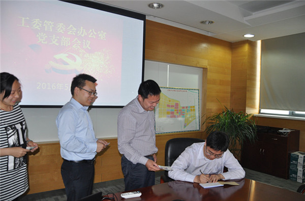 5月20日是園區(qū)工委管委會辦公室黨支部的黨員活動日。活動當天,黨支部全體黨員按照園區(qū)“兩學一做”學習教育部署開展集中學習。