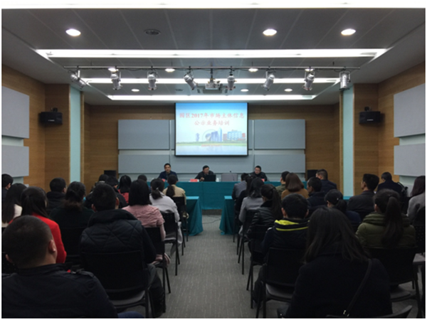 近日,園區(qū)舉辦市場(chǎng)主體信息公示培訓(xùn)班,市工商局個(gè)企處處長(zhǎng)彭軍等領(lǐng)導(dǎo)應(yīng)邀授課,園區(qū)80余家企業(yè)參加培訓(xùn)。